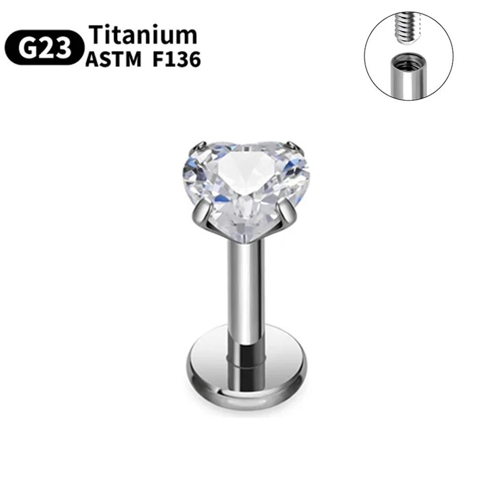 Titanium Microlabret Heart Earring with Cubic Zirconia for Lip, Helix, Tragus Piercing PF T23LI3-2