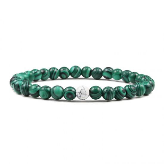 Женский браслет из камня зеленый малахит 80311-5 с бусиной из белого кахолонга